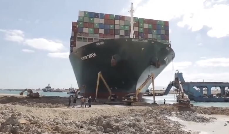 苏伊士运河管理局主席乌萨马·拉比耶表示,一旦轮船上浮,运河将会24小时运转。他表示,疏通完目前的拥堵将需要大约三天半。