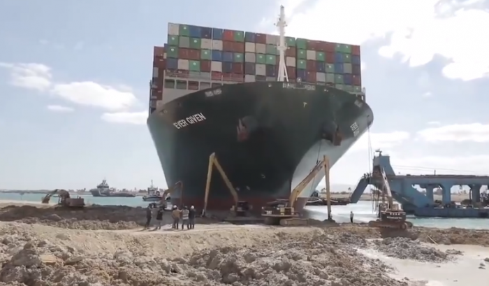经过几天挖掘,搁浅一周的“长赐号”巨型货轮今日终于成功上浮,其船尾已离开河岸。但由于河苏伊士运河道尚有几百搜船只拥堵,目前尚不清楚何时能开放交通。据国内媒体最新报道,埃及苏伊士运河管理局表示,“长赐号”重新上浮之后,运河还需三天半就可以恢复畅通。