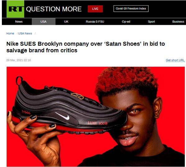 因“撒旦鞋”在美国被狂骂的耐克,似乎真急了。据“今日俄罗斯”(RT)报道,当地时间3月29日,耐克公司以商标侵权、品牌来源不实以及不正当竞争等缘由对纽约的街头潮流品牌MSCHF提起诉讼。此前,MSCHF公司与美国说唱歌手利尔·纳斯·X一起推出了一款“撒旦鞋”:每只鞋的鞋底,都含有一滴人血……