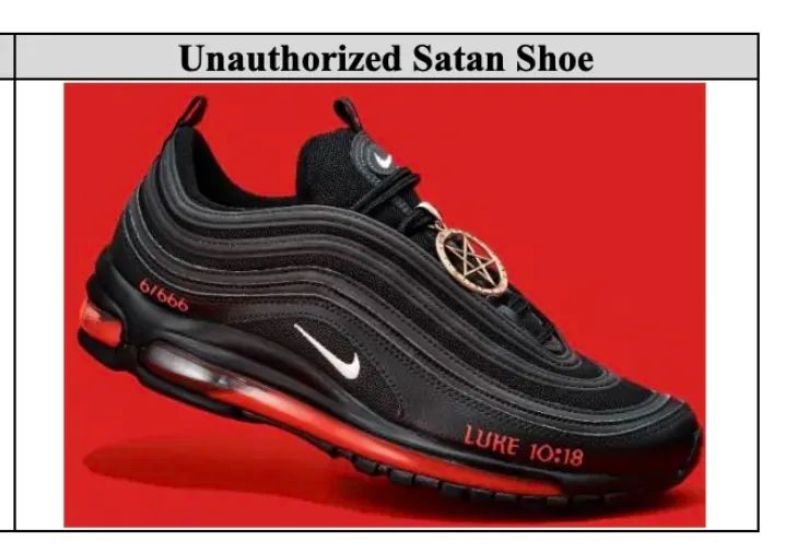 为此,耐克寻求禁止MSCHF在使用耐克标志、或使用“与之基本无区别的任何标志”下,“制造、运输、推广、广告、宣传、分销、提供销售或销售任何产品”;除要求禁止MSCHF继续生产这款“撒旦鞋”,耐克还要求法院命令前者将所有“撒旦鞋”以及“他们拥有、保管或控制的、关系到耐克标志的任何物品”交付销毁。