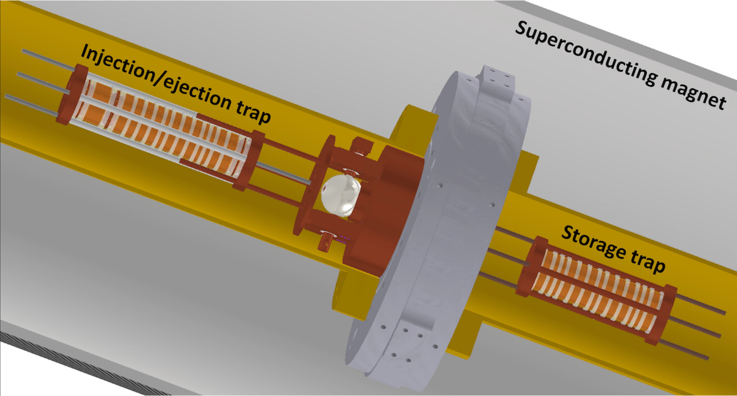 BASE-STEP是一个在为了运输而加固的超导磁体内的彭宁离子阱。该装置由液氦冷却,使用均匀的轴向磁场和不均匀的四极电场来捕获和释放反质子。这听起来很简单,但装置长度却超过6英尺(1.9米),重一吨。