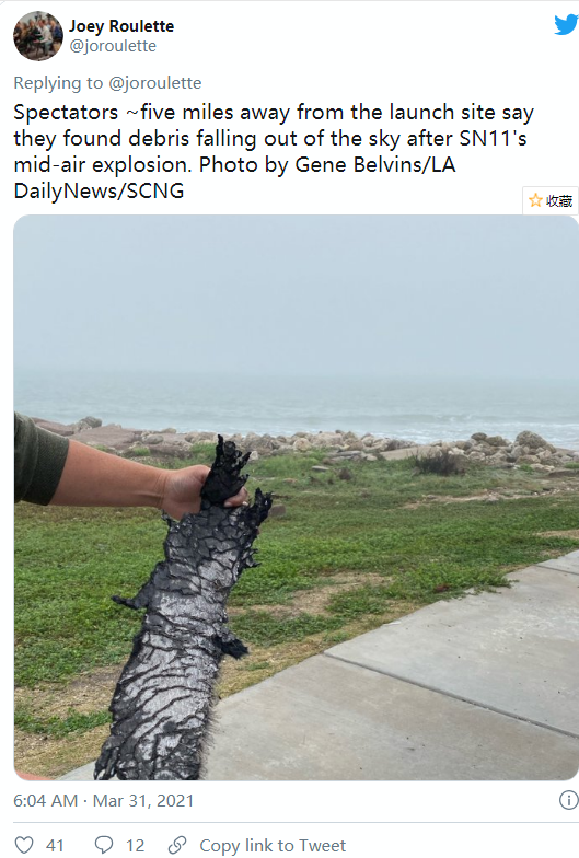 距离SN10(星舰原型机10号)试飞爆炸二十多天后,北京时间昨晚(3月30日)21点,SpaceX在美国德克萨斯尝试对SN11点火,飞行高度10公里,结果着陆时再度失败。尽管官方的直播信号在5分49秒后就宕机,NASA的镜头还是捕捉到了着陆失败的场景,记者耳机里传来了巨大的爆炸声。 但由于浓雾加雨水,火花四溅的画面没出现。