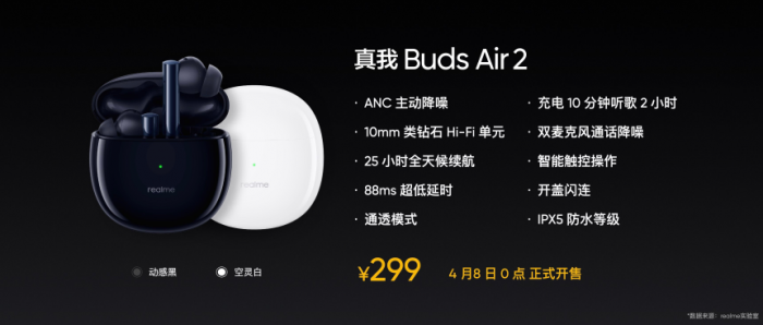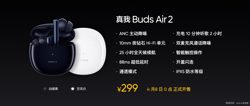 当然,除手机外官方还推出了新款realme Buds Air2无线耳机。