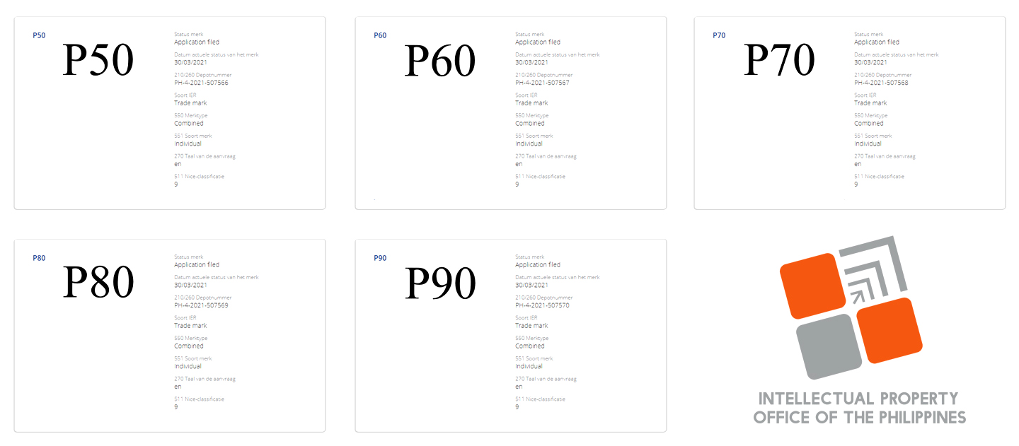 有趣的是,2021 年 3 月 29 日,华为在菲律宾知识产权局(IPOPHL)提交了 P50 到 P90 的商标申请,且相同的申请也已包含在欧盟知识产权局(EUIPO)的数据库中。
