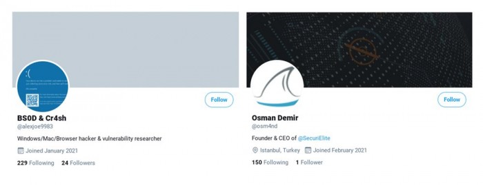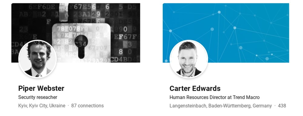 攻击者最新的一批社交媒体资料延续了冒充对利用和攻击性安全感兴趣的安全研究人员。在LinkedIn上,我们发现了两个冒充防病毒和安全公司招聘人员的账户。我们已经向平台报告了所有被识别的社交媒体资料,以便它们采取适当的行动。