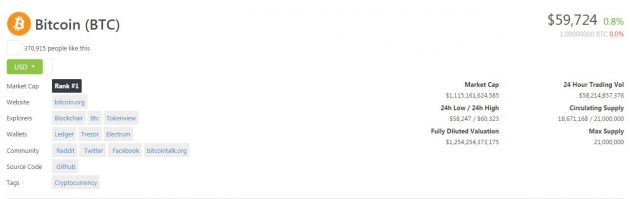 4月2日消息,据国外媒体报道,本周,比特币价格持续走高。周四,该加密货币的价格涨破60000美元大关,再创新高,为2020年3月19日以来首次。coingecko网站的数据显示,目前,比特币的价格为59724美元,市值约为1.12万亿美元。在过去24小时里,比特币的价格最高为60323美元,最低为58247美元。