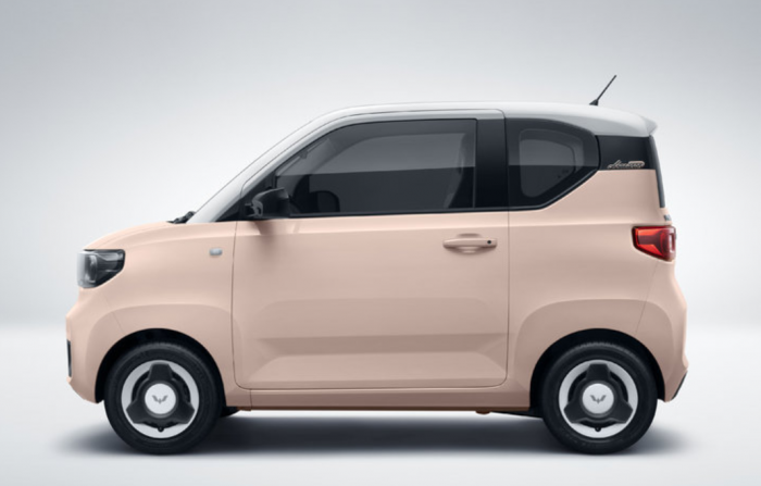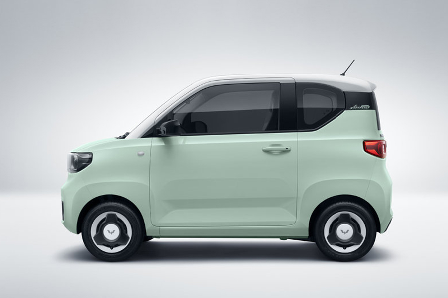 从公布的外观图来看,宏光MINIEV马卡龙搭配白桃粉、柠檬黄与牛油果绿三款五菱春色,尽显简洁、清新美感;新造型大灯采用回字设计,点缀在车身上衬托小巧可爱。