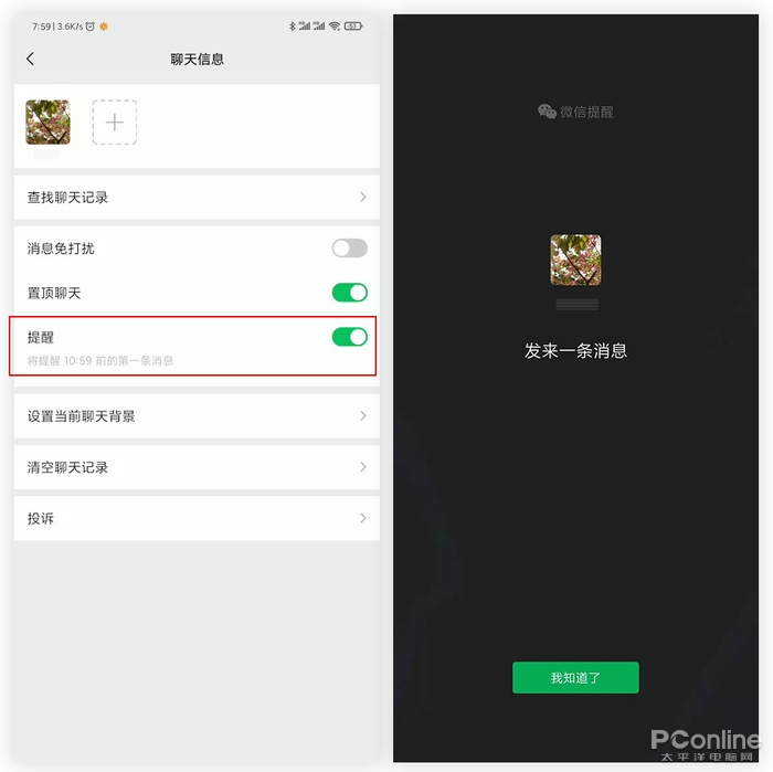 开启之后,如果该联系人在规定时间内发来消息,微信会自动弹出一个醒目的全屏提醒,声音也和普通消息不一样。