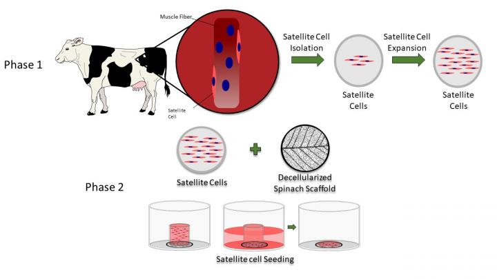 该研究指出,在实验室中创造这样的支架 "几乎不可能"。研究人员此前曾将菠菜支架作为种植人类心脏组织项目的一部分;这一次,他们将注意力转向了牛组织。根据研究报告,分离出的牛前体肉细胞可以存活长达两周,并成功分化成牛肌肉。