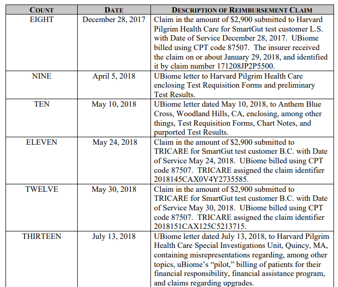 问题是,uBiome 的主要营收来源不是医保报销,而是实实在在的欺骗……根据 FBI 调查,该公司从2015年策略转型到至少2017下半年,一直在对消费者、医疗机构和保险公司进行欺诈行为。该公司历史上总计向保险机构提交了大约3亿美元的账单,实际所得3500万美元左右。