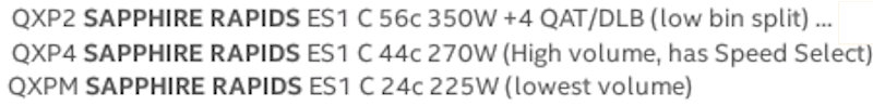 此外,Sapphire Rapids的样品也已经流出,包括225W 24核心、270W 44核心、350W 56核心——这一代的24核心热设计功耗有230W、185W、165W、150W不同档次。