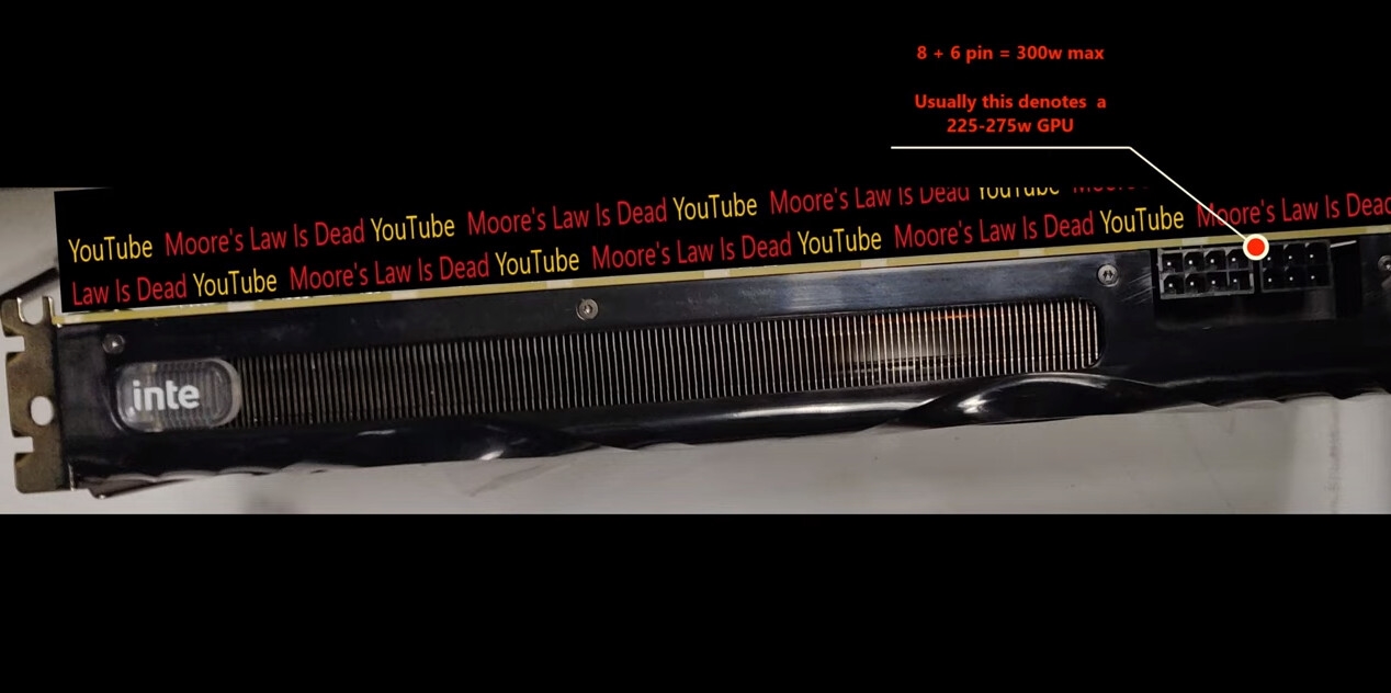 Intel的第一款Xe架构独显DG1最终没能带来性能上的惊喜,只是少量供给到了OEM渠道。不过,DG2的工程样卡日前首次曝光,定位可以说一点都不占下风。图中可以看到双风扇、大面积的散热翅片、Intel Logo、8+6Pin外接供电(加上PCIe,总计300瓦供电能力)等。