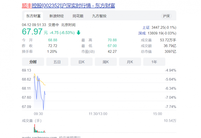 4月9日早盘,顺丰控股一字跌停。随后,#顺丰跌停#登上微博热搜。