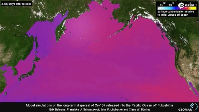 研究显示,日本从排放之日起,57天内放射性物质就将扩散至太平洋大半区域,3年后美国、加拿大也将遭到核污染影响,5年后整个太平洋将遍布高浓度核辐射,10多年后仍然挥之不去。