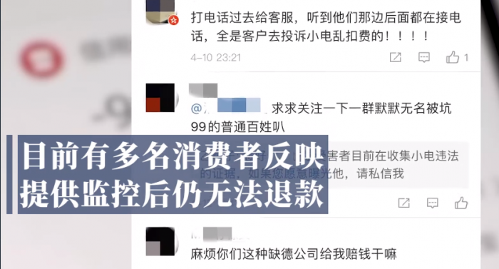 经调查发现,目前有多名消费者反映租借小电共享充电宝归还后继续扣费,扣款金额多为99元,且存在退款难问题。记者致电小电客服,回应称订单超48小时则无法退款。