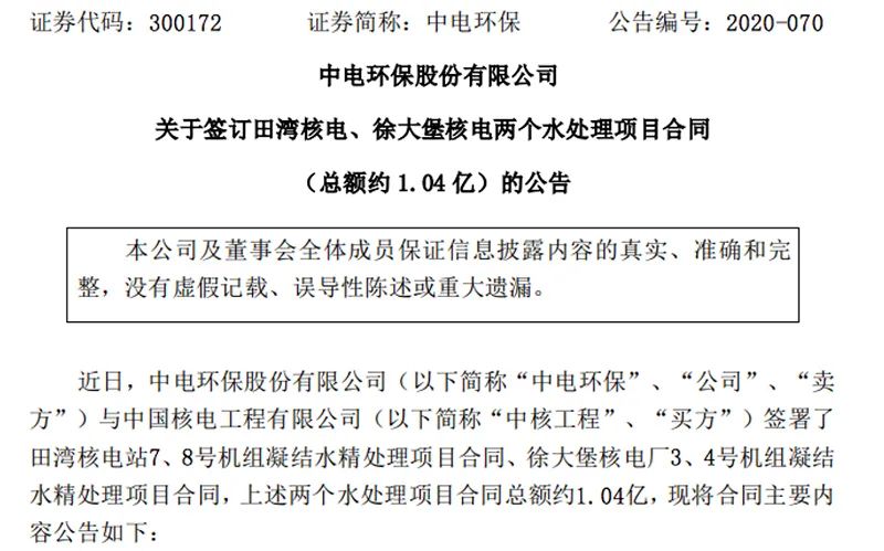 对此,中广核澄清说,公司关注到外部相关报道提及公司全资子公司中广核研究院有限公司员工于2014年7月刊发在《辐射防护通讯》的文章《压水堆核电站含氚废液处理技术》,该文章对国内外氚分离技术研究进展情况进行简述,并探讨压水堆氚处理技术的可行方案,并非已掌握含氚废水处理技术。