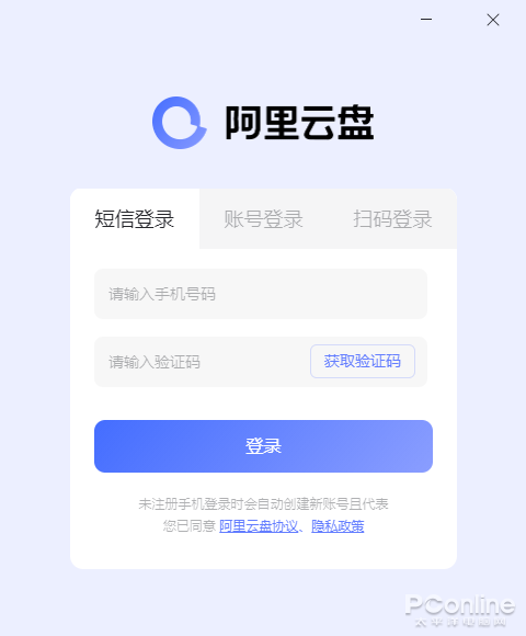 阿里云盘PC版支持三种登陆方式(短信、密码、扫码),多种登陆方式方便用户在不同场景进行登陆操作。