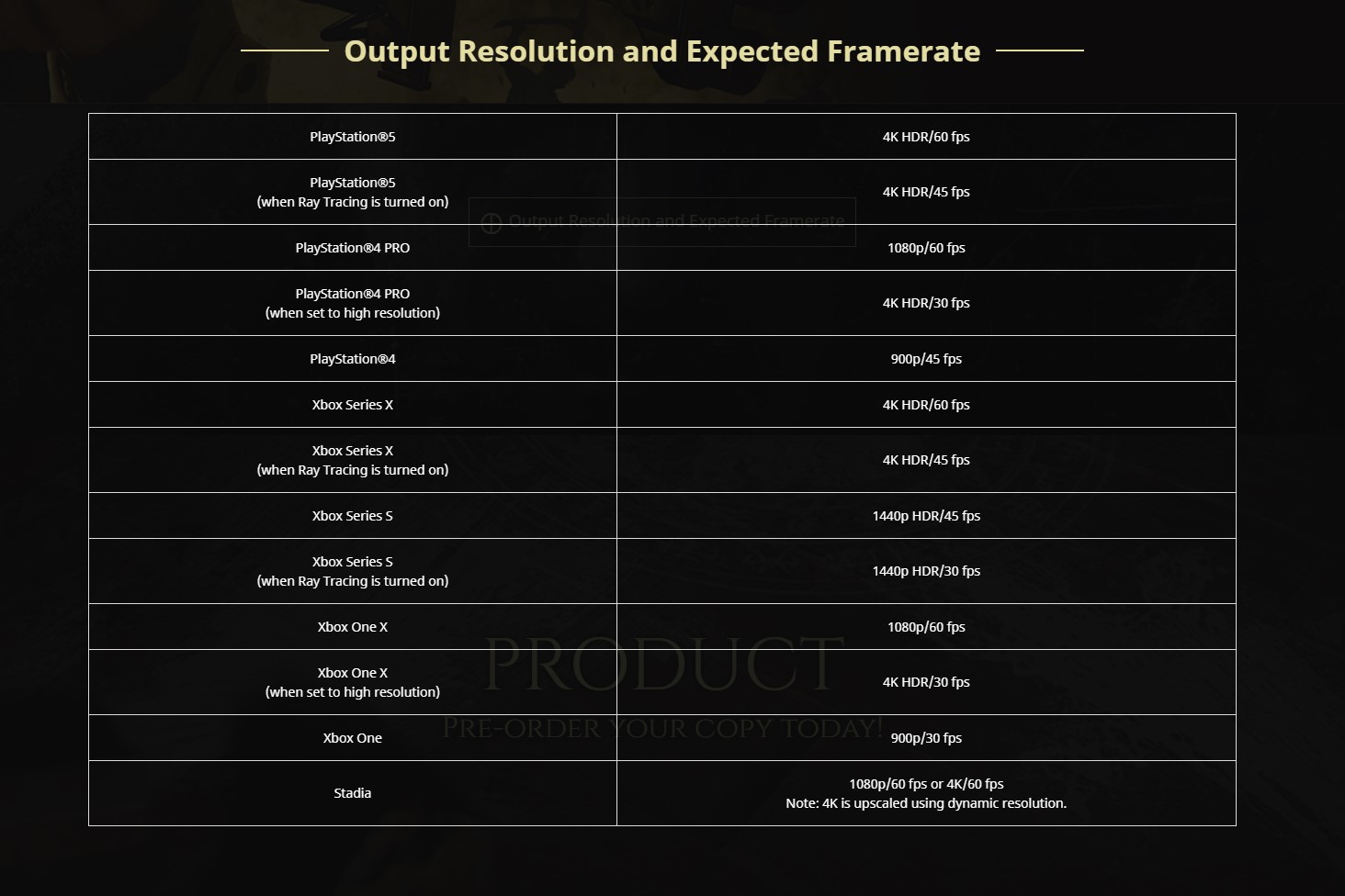 感兴趣的朋友,可到官网上查看新作在索尼 PS5、微软 Xbox Series X、以及 Google Stadia 等平台上的参考性能数据(传送门)。