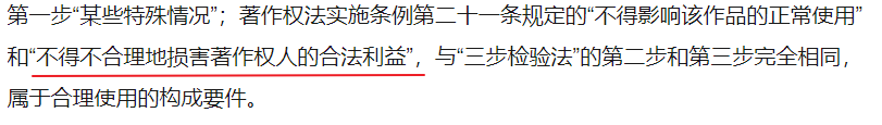 而且还有一条法律,那就是不得不合理地伤害著作权人的合法利益。