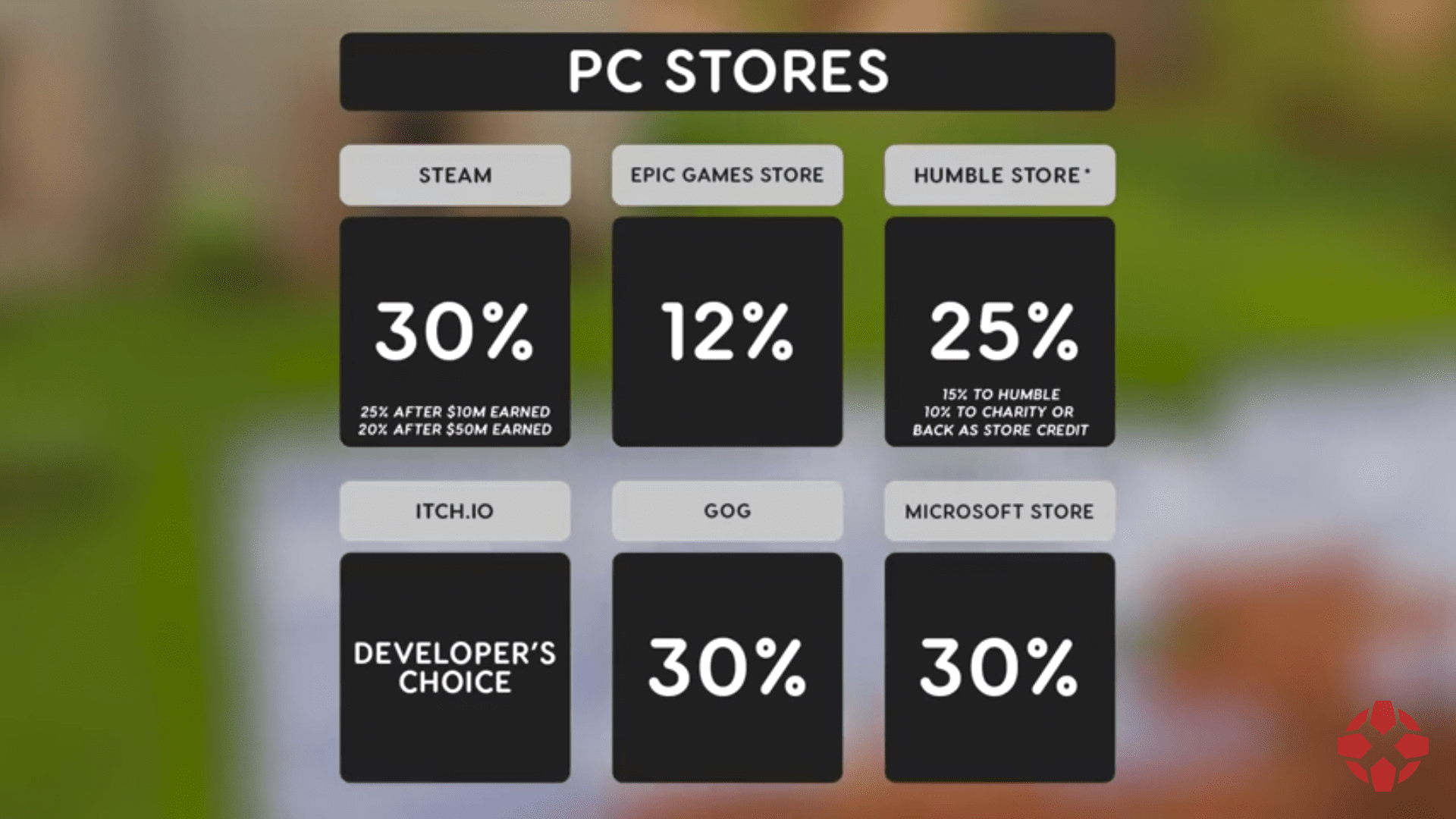 这个问题出现于2021年GDC游戏行业现状调查当中,调查提问原文为:“你认为数字店面(例如Steam,Epic游戏商店,App Store)抽成多少的游戏收入是合理的?”