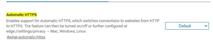 如果使用的是 Edge Canary 92.0.877.0 及更高版本,请访问 edge://flags/#edge-automatic-https 。