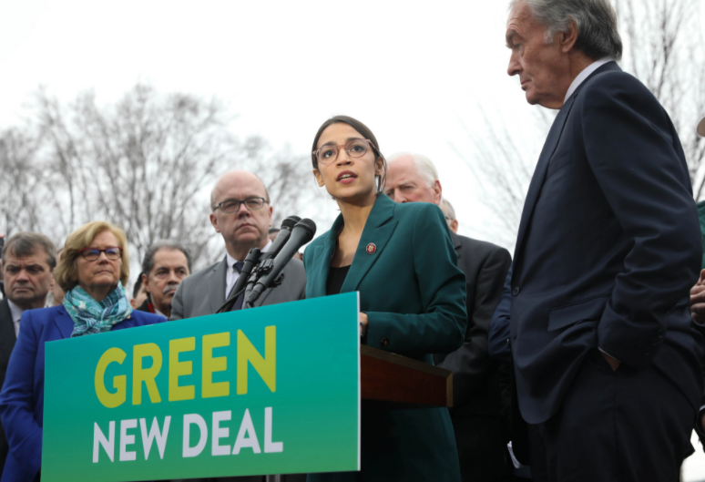 民主党新科议员科尔特斯(Alexandria Ocasio-Cortez)、马萨诸塞州民主党参议员埃德·马基(Ed Markey)等人提出“绿色新政”,曾遭美国参议院否决。