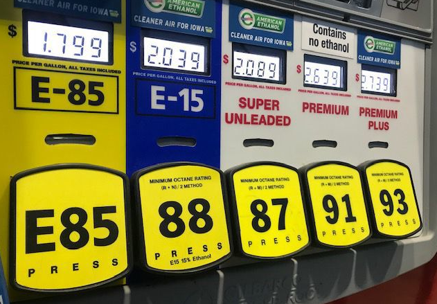在美国,多数加油站都提供几种类型的汽油,其标号分为87、89、91号等,部分提供E15、E85类型的选择。数字表示乙醇的添加比例,15%和85%。当然,E85其实基本上就是乙醇了。这类汽油虽然油耗会增加,但价格更便宜。我在美国期间,汽车加油基本上都是加便宜的E15。不加更便宜的E85,是因为我的二手车(其实已经是四手了)不支持。