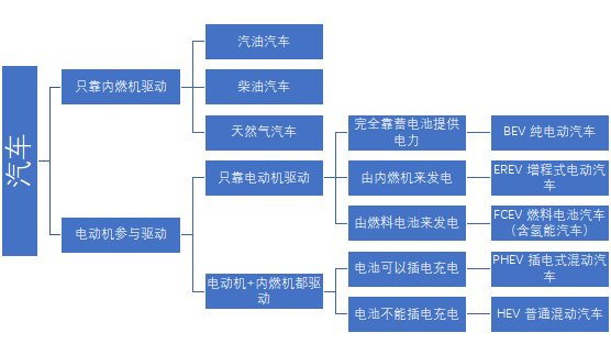 而现在我们定义的新能源汽车,则是指依靠电动机驱动的汽车。可以说,我们现代定义的所有的新能源汽车,一定是由电机来驱动的。至于这个电从哪里来,就可以分类了。比如完全来自于锂电池,则是纯电动汽车BEV;部分来自于电池,同时保留内燃机,且电池可以独立充电,则是插电式混动汽车PHEV,或增程式电动汽车EREV;完全来自于内燃机,就是HEV,但HEV因为不能独立充电,在许多国家都不被认为是新能源汽车;而如果电的来源是燃料电池,则是燃料电池汽车FCEV。这其中又主要以氢燃料电池为主。目前最有代表性的新能源汽车,不外乎三类:BEV,PHEV和FCEV。