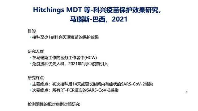 四期临床研究结果来源于巴西玛瑙斯,主要评价至少接种1剂克尔来福的医务人员或优先接种人群接种克尔来福后的保护效果,研究方法为检测阴性设计(TND)。