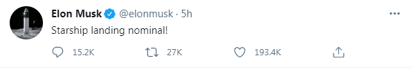 Elon Musk 通过推特官宣 SN15 着陆成功,至此,SpaceX 星舰项目实现了阶段性突破。