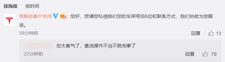 因而,也有网友对特斯拉的回应调侃道:“您太客气了,直接说操作不当就完事了。”看到这样的回复,不少网友也是忍俊不禁。