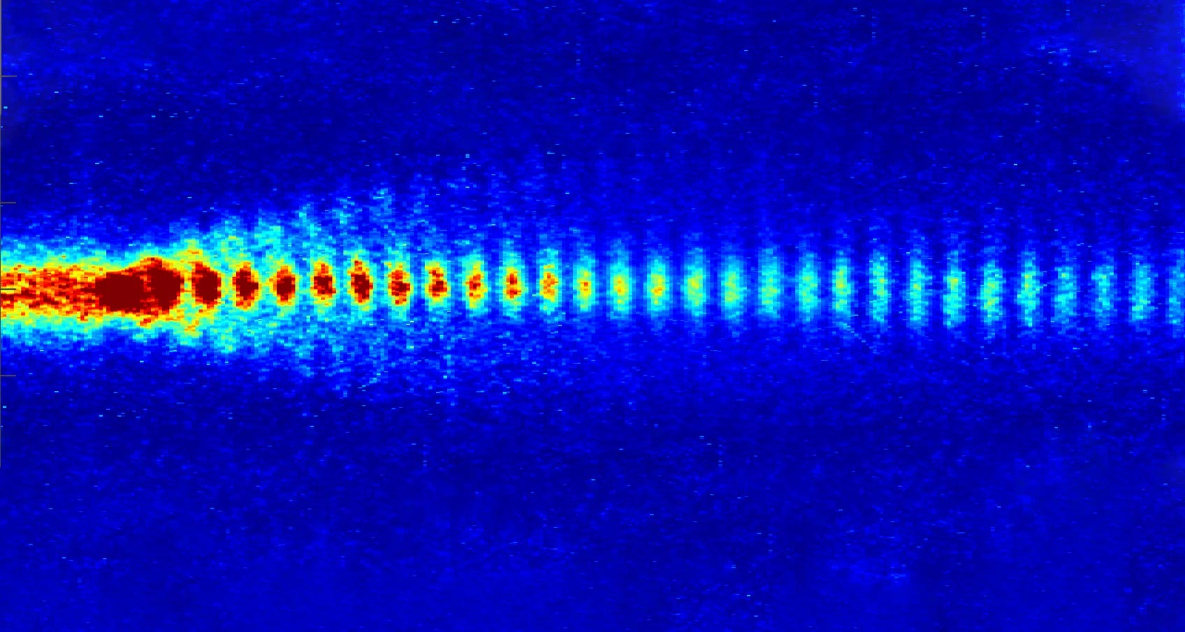 为此,科学家们利用了自我调制--一种束和等离子体之间的“自然”相互作用。Batsch表示:“在这个过程中,较长的质子束被分裂成只有几毫米长的高能质子微束从而形成了队列束。这一过程形成了等离子体波,随着火车通过等离子体场而传播。”