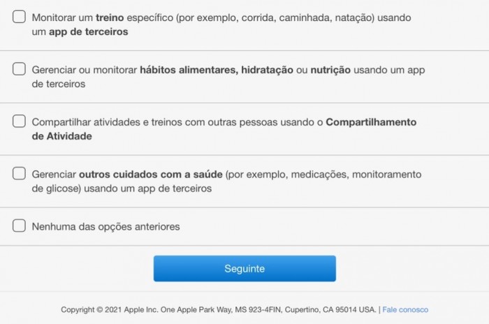 一位巴西的 9to5Mac 分享了这份调查的截图,他在周五的电子邮件中收到了这份调查。在电子邮件中,苹果说它希望得到关于 Apple Watch 用户体验的反馈,并提供了提交答案的链接。