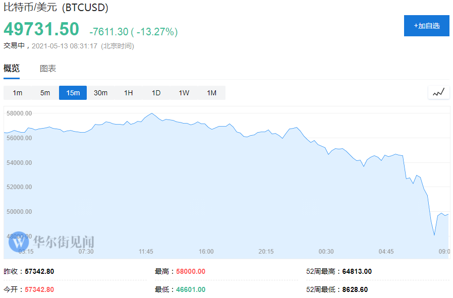 比特币为何突然大跳水?华尔街见闻早间提及: