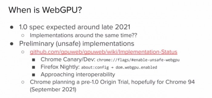 WebGPU还包括WebGPU着色语言(WGSL),可以很容易地翻译成SPIR-V。WebGPU和WebGPU着色语言的第一个公开工作草案可以从W3C.org上获得。