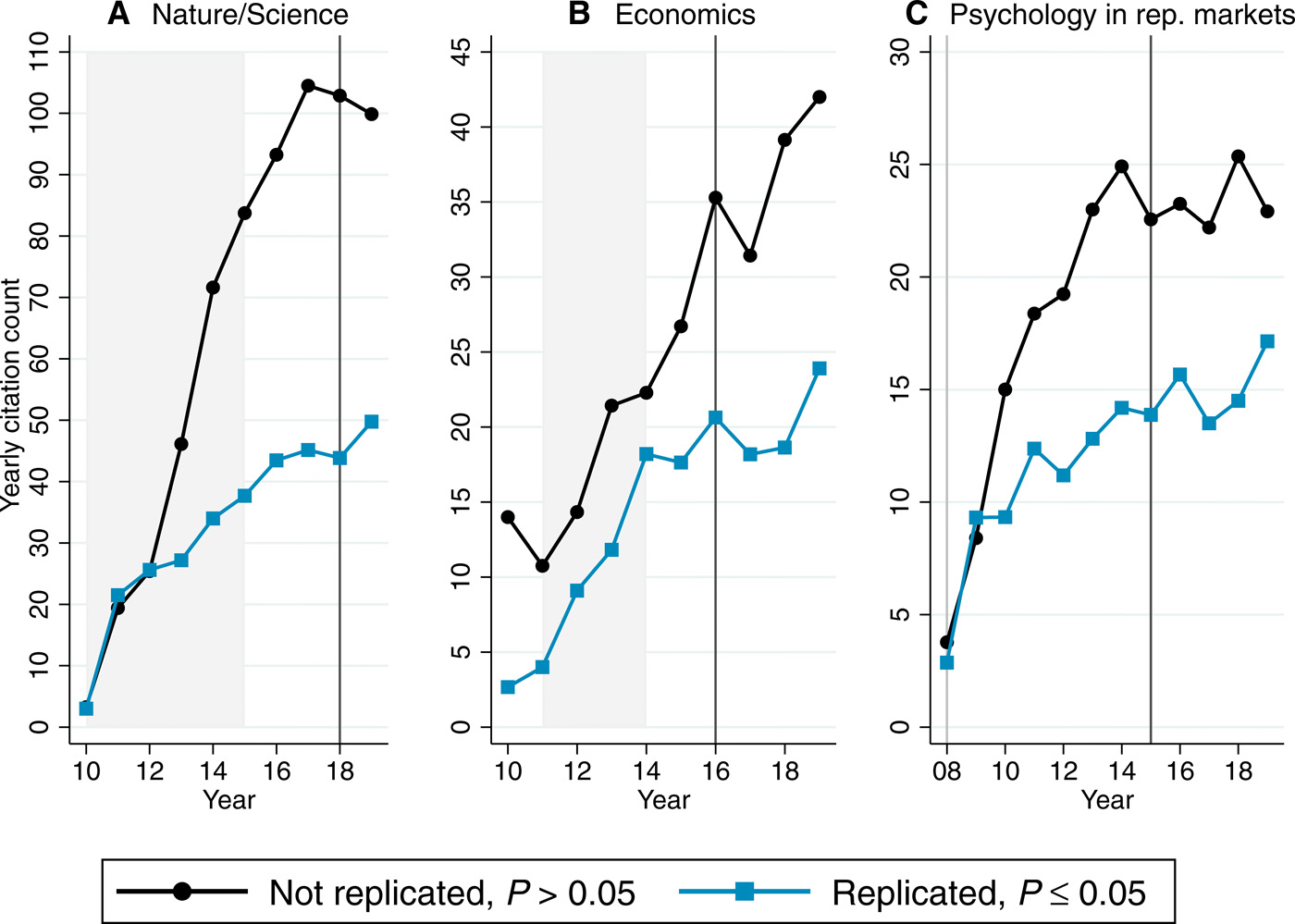 他们周一在《科学进展》杂志上报告说,那些未能复制的论文在Google学术上的引用次数明显增加,平均每年增加16次引用。Serra-Garcia和Gneezy说,这是一个很大的数字--在同一时期,高影响力期刊上的论文平均每年积累了约40次引用。