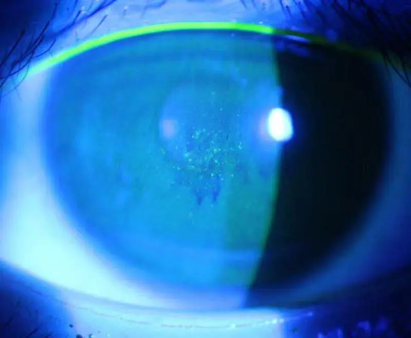 初二学生张晓彤3年前开始佩戴角膜塑形镜,今年5月初出现眼痒、鼻塞、打喷嚏等过敏症状,但并未遵医嘱停止佩戴角膜塑形镜,晚上戴镜后眼睛有点痒,就用手使劲揉眼睛,导致角膜上皮损伤,未累及角膜深层。