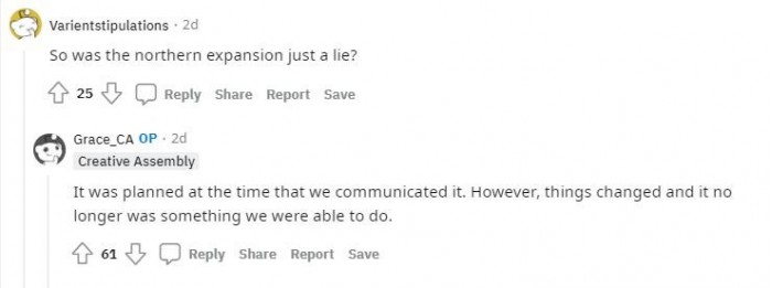 Grace称CA工作室曾计划推出北方游牧民族阵营DLC,但后来因为计划发生变化,导致他们最终取消开发这款DLC。