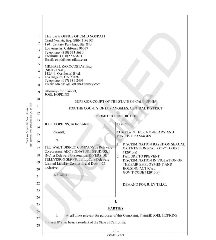 Hopkins自1994年以来一直在该公司工作。诉讼称,在2000年他被提升为Touchstone电视公司的财务副总裁时,人们知道Hopkins被认定为同性恋。在这个时候,尽管Hopkins在公司的任期和以前的晋升,但他“经历了持续的歧视,包括但不限于晋升时被拒绝,以及没有得到与其他部门主管相称的工资”,申诉中说。