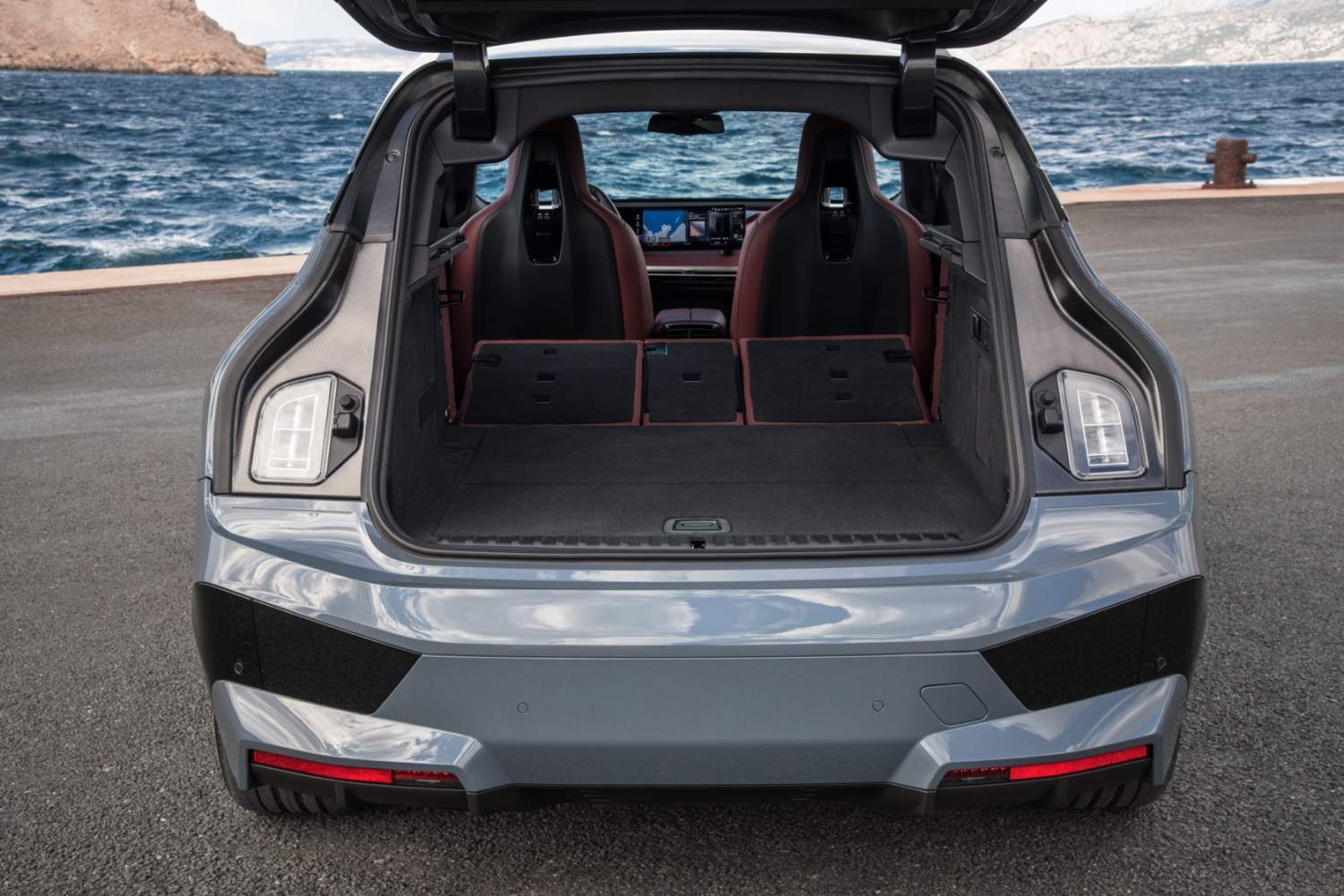 从外面看,这是一款熟悉的SUV外形,不过它还是拥有一些特定的EV细节。2022款iX xDrive50长195英寸、宽77.4英寸、高66.7英寸--大概和X5一样长一样宽,不过它的高度跟宝马X6旗鼓相当。宝马的肾型格栅被封闭起来,里边部署了摄像头和雷达等传感器,而不再是传统燃油版的散热区域。