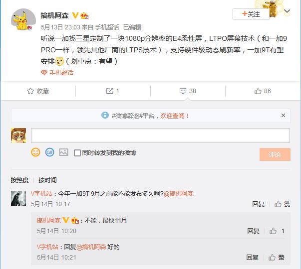 微博数码博主@搞机阿森透露的消息称,一加找三星定制了一块 1080P 的 E4 柔性屏幕,支持 LTPO 屏幕技术,支持硬件级动态刷新率,这块屏幕有望率先装备在一加 9T 上。外媒 TechDroider 还透露今年没有一加 9T Pro。