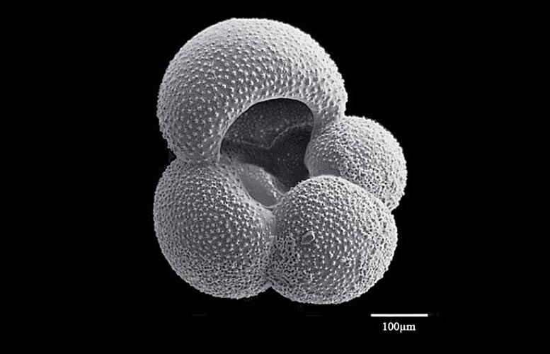 过去二氧化碳水平的化学指纹保存在微观的化石壳中,图为有孔虫
