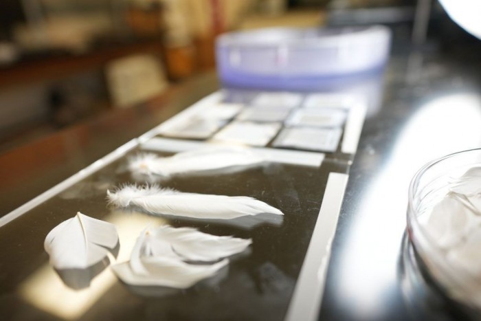 弗吉尼亚理工大学的研究人员首先调查了当这些羽毛的多层堆积在一起时会发生什么。他们部分密封了一系列的羽毛,并将它们堆放在一起,使未密封的部分排成一排。这被放置在一个压力室中,然后将水倒在顶部的羽毛上,用管道输送空气,迫使水通过羽毛向下流动。