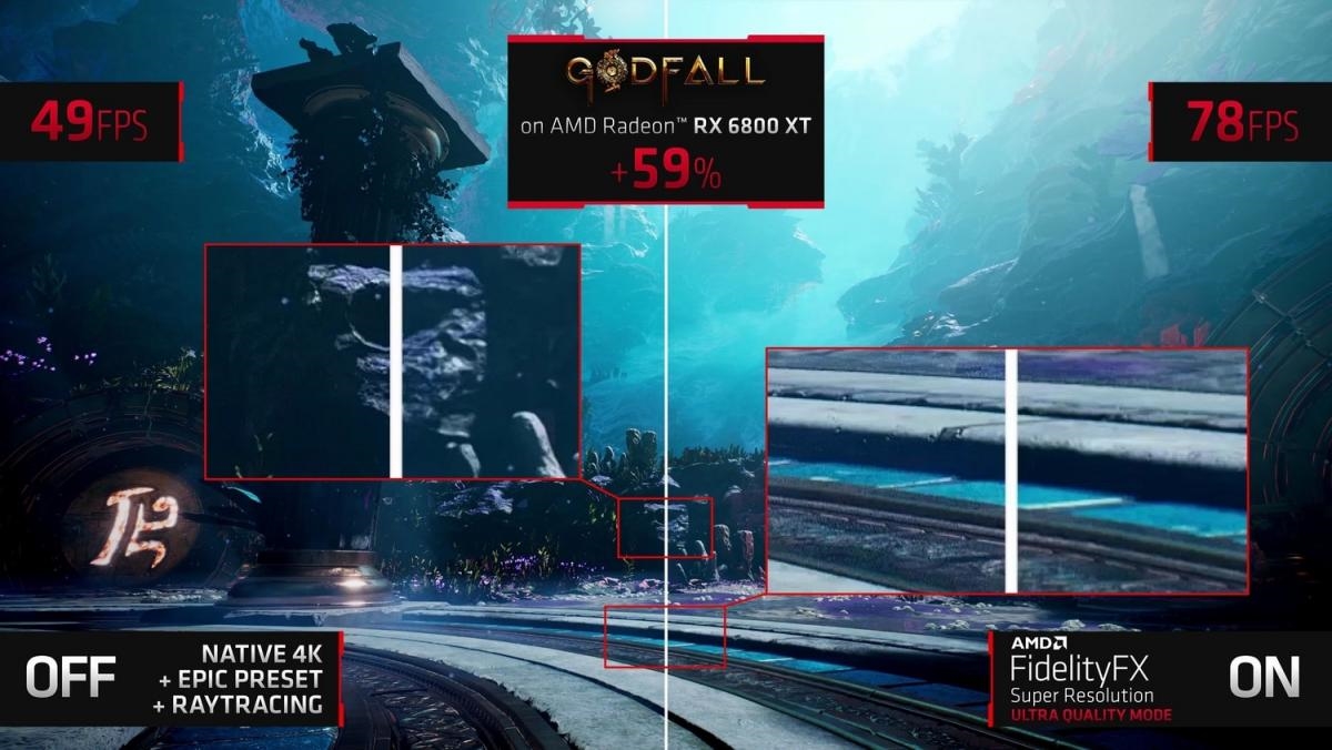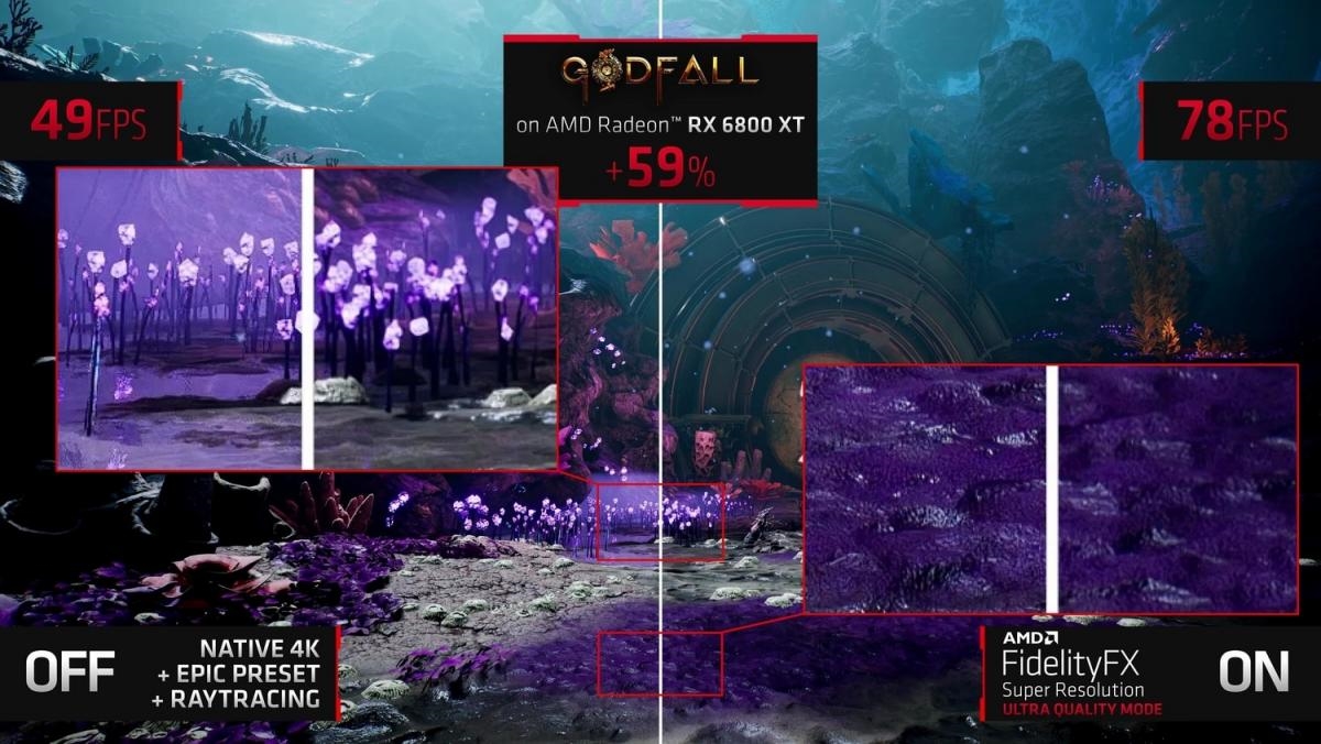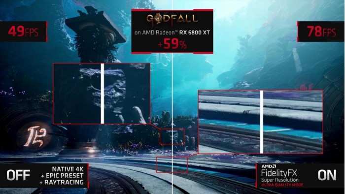 不过,FSR不可能完全不牺牲画质,按照AMD的说法,其实现办法是借助超高画质的边缘和独特的像素细节。