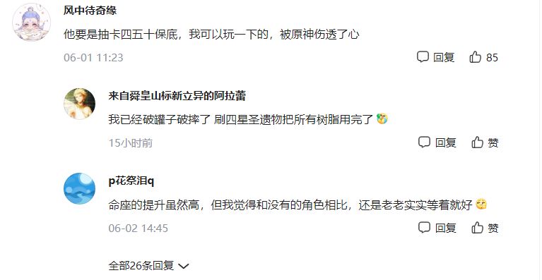 也有玩家表现的比较幸灾乐祸,抱怨《原神》抽卡太坑,并表示如果《The legend of neverland》抽卡保底机制更“良心”,可以考虑玩一下。