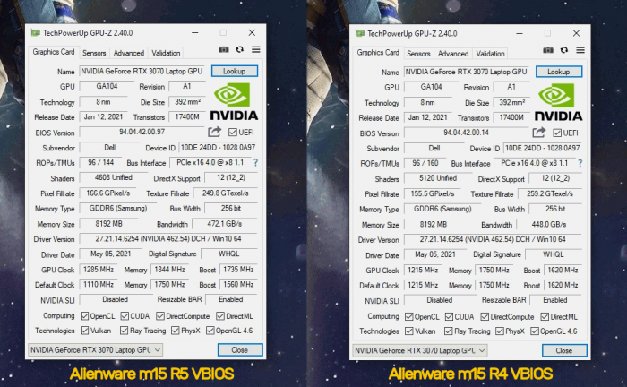 近日,有不少国外网友发现,他们入手的戴尔Alienware m15 R5笔记本有些异常,RTX 3070显卡本应有5120个核心,但却只显示4608个,莫名其妙丢了512个。奇怪的是,m15 R4、R6版本却都一切正常。