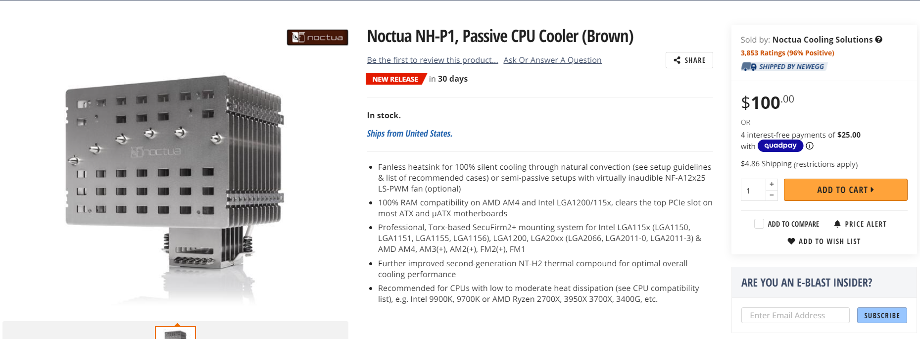 虽然商品页面现已被撤下,但 WCCFTech 还是抄录了 NH-P1 的一些关键参数,比如对 AMD AM4 和 Intel LGA1200 / 115x 平台拥有极佳的兼容性。