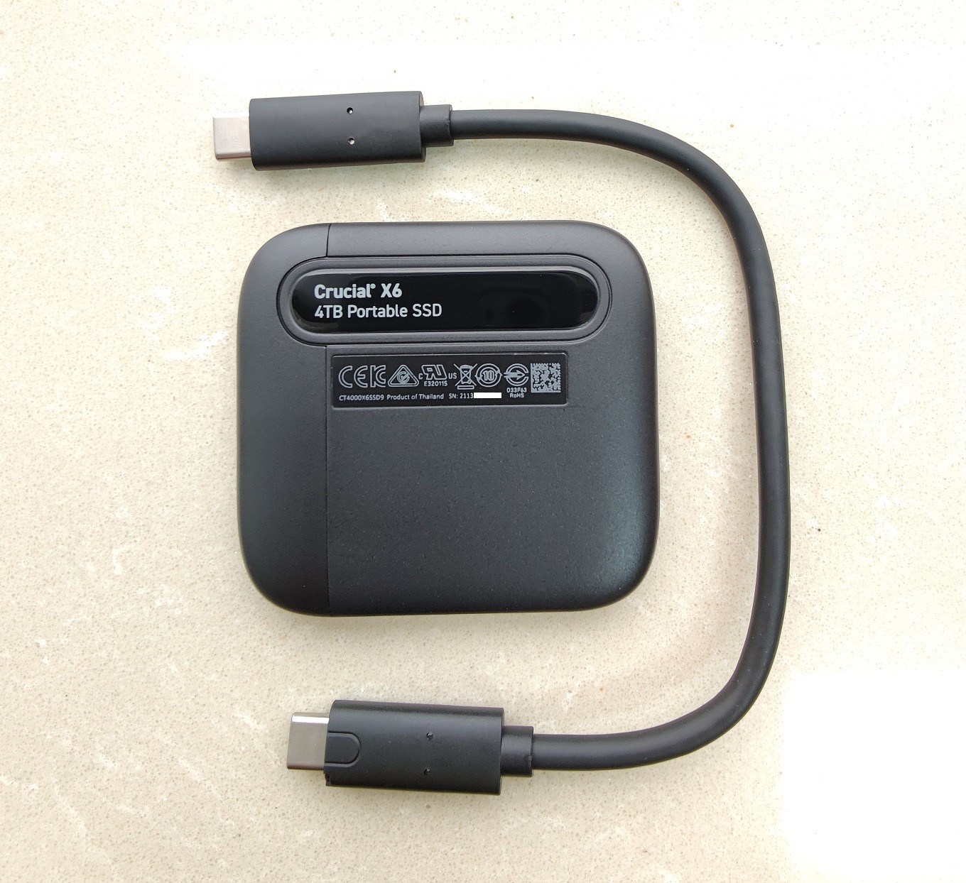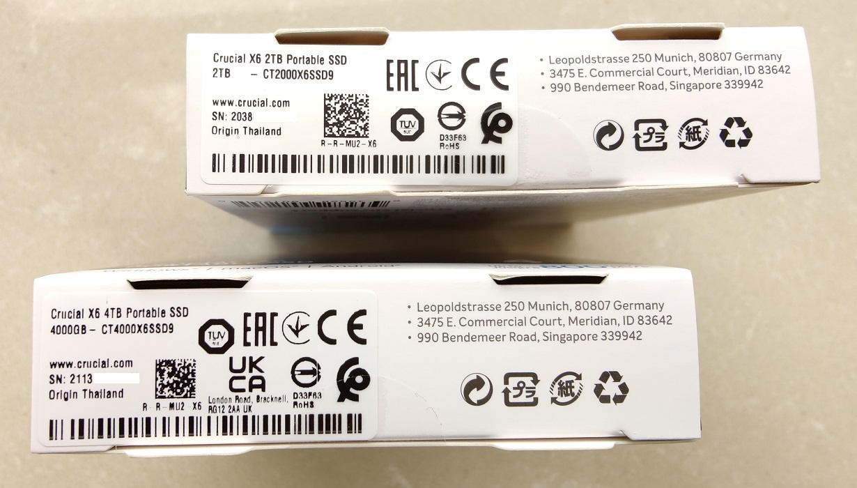 从外观上来看,4TB 版本的Crucial英睿达 X6 系列移动固态硬盘沿用了相同的塑料壳体设计,但在包装盒上明确标注了传输速度可达 800 MB/s 。