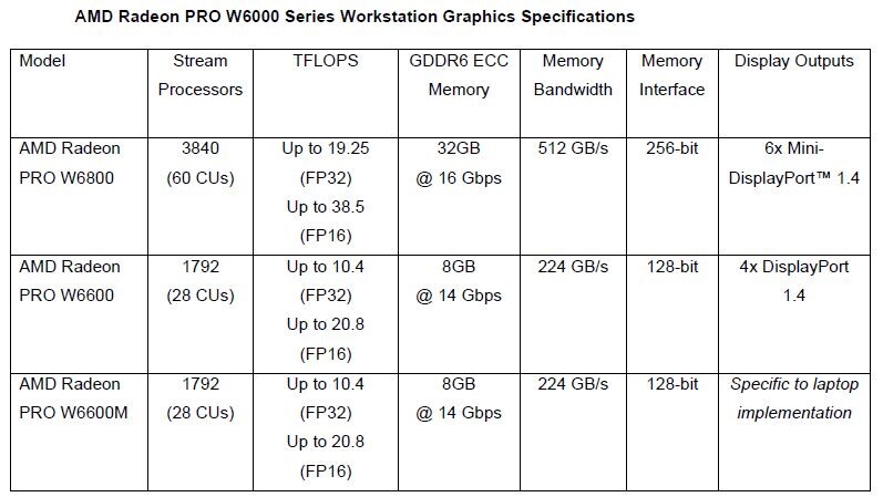最后,还有新的Radeon Pro W6600M图形芯片,主要用于工作站级笔记本。