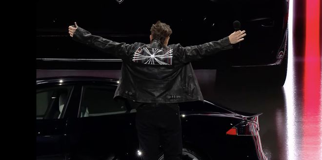 马斯克身穿皮夹克和黑色牛仔裤,驾驶 Model S Plaid 登上舞台。他说:“我们为什么要造这么快的车呢?这对可持续能源的未来非常重要。毫无疑问,我们必须证明电动汽车是最好的汽车。”